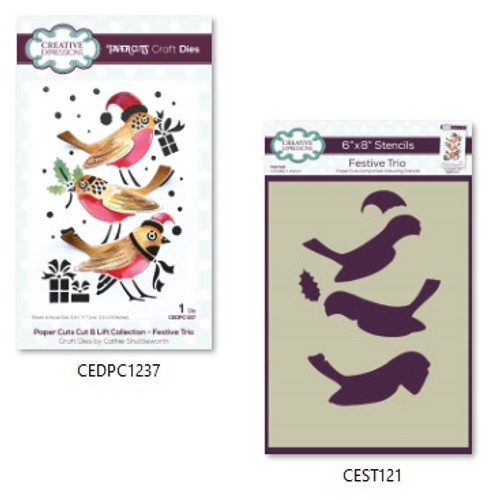 Creative Expressions Festive Paper Cuts Cut & Lift Collection & 6x8in Companion Stencil Bundle - Festive Trio