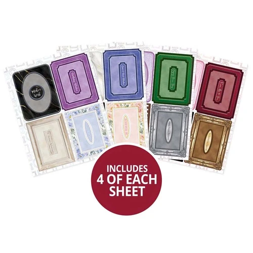 The pack contains 16 x 350gsm sheets, each with 4 different frames giving you an impressive 64 frames in total! We’ve included a range of styles and colours meaning you’ll find a frame to match endless themes and designs for your makes and what’s more, we’re giving you a bonus universal sentiment with each and every frame for the perfect finishing touch! So not only are you getting 64 frames but 64 sentiments as well - 128 die-cut elements in total!