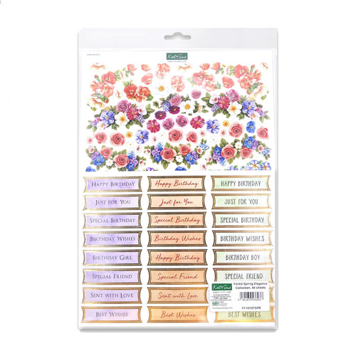 Add dimension with 3 sheets of die-cut Garden Flower embellishments, ideal for layering floral sprays and decorative accents. A sheet of double-sided die-cut butterflies introduces movement and colour, while 4 sheets of foiled pastel birthday banners – each design foiled in both gold and silver – provide elegant sentiments for celebratory makes.