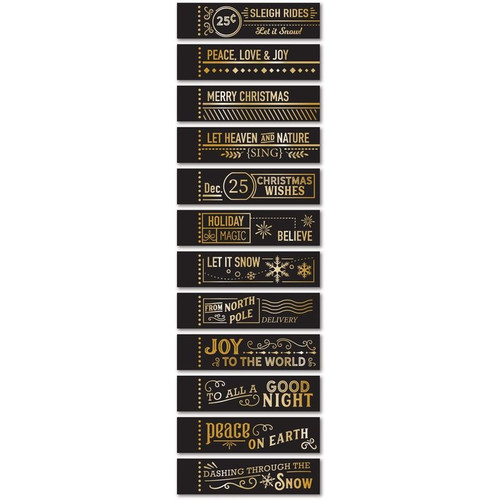 40 Black greeting tabs gold foiled. 4 each of 10 designs. 1.75 x 0.25 inch each tab 4.4 x 0.6 centim