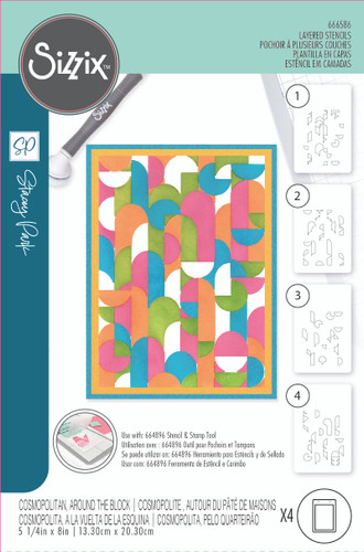Geometric design has a fresh new take with this modern layered stencil by Stacey Park. Choose bold color contrasts or soften the effect with complementary shades to suit card backgrounds, scrapbook pages and more. Pair this with your Sizzix?? Stencil & Stamp Tool (664896) to get perfect registration every time.