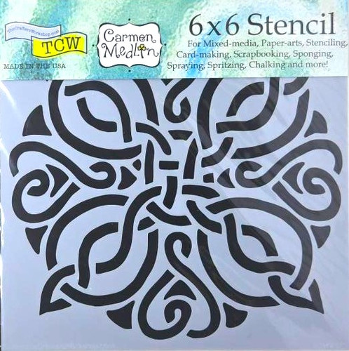 TCW Stencil measures 6"x 6? and is produced from original hand drawn art utilizing premium quality PET plastic. Stencils are transparent for easy registration and 10 ml thick making it durable yet flexible and allowing for beautiful dimension. TCW uses the most advanced laser cutting technology to ensure crisp details and support our intricacy of design. Apply your favorite medium with a palette knife, blender brush, paintbrush, spatula, or sprayer. Stencils work on paper for scrapbook layouts and card fronts, on a journal, canvas, fabrics, walls, mat boards for mixed media, furniture, and other home decor. After using clean with warm water and gently scrub with soap. Manufactured in the USA